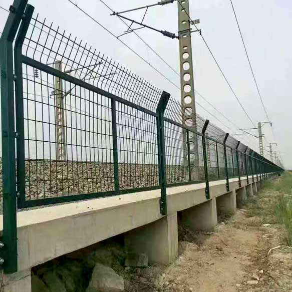 8001型鐵路隔離柵 鐵路護欄網用于鐵路兩側的隔離防護設施起隔離和防護的作用的護欄網產品,它被廣泛應用于高速公路、鐵路、垃圾填
