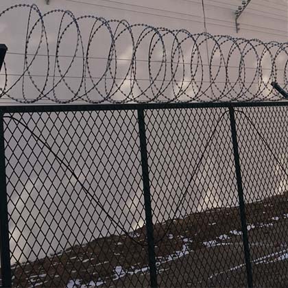 行浸塑或噴塑處理。頂端安裝刀片刺繩,刀片刺繩擁有鋒利的刀片,手不能握,可以有效的阻止非法分子的攀爬,從而使監獄鋼網墻從外形