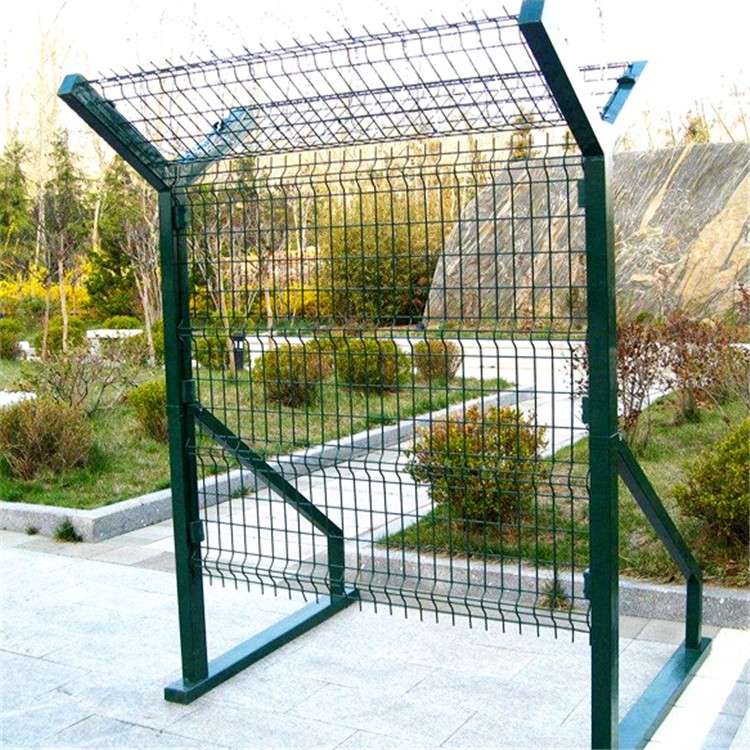 頂部加裝刀片刺絲,刀片刺繩后有很好的增強了安全防護性能。采用電鍍,熱鍍噴塑,浸塑等防銹形式,具有很好的防老化,防曬等特點。其產品造型美觀,花色多樣,既起到圍欄作用,又起到美化作用。由于具有安全性高,防攀爬能力好,網片連接方式采用特制SBS緊扣件,有效防止人為的破壞性拆除,橫向四道折彎加強筋,使網面強度明顯著增加。