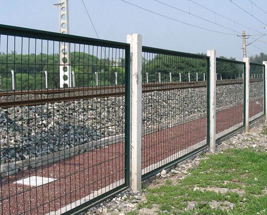 鐵路防護柵欄的材質:以前柵欄立柱還有水泥的,現在基本都是采用金屬網的主體,立柱采用的水泥立柱。