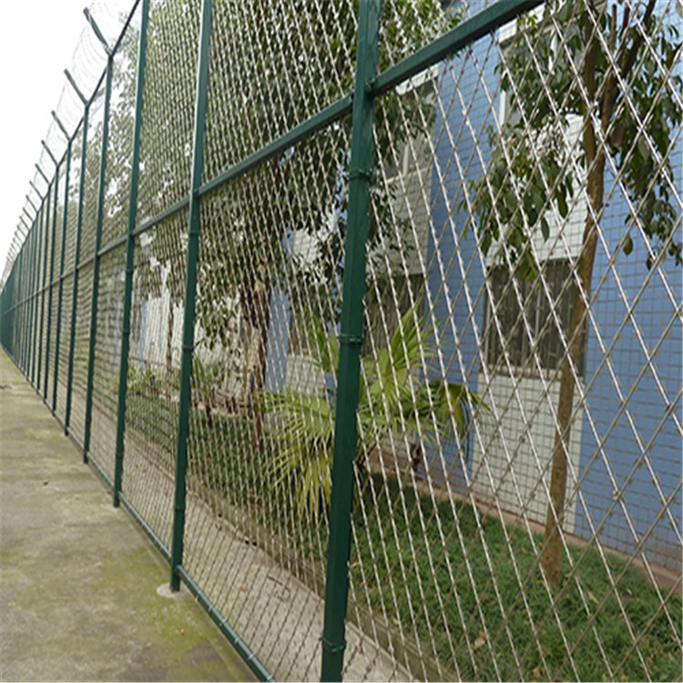 監獄圍墻網又稱作“Y型安全防御護網”監獄隔離網,監獄護欄網,是由V型支架立柱,加強型焊接片網,安全防盜連接件和熱鍍鋅刀片刺籠組成強度和安全防御性級別很高,近年來,被廣泛應用在監獄,看守所,機場,軍事基地等高安全場所。艾瑞金屬絲網生產廠家帶您了解監獄圍墻類型,常用監獄圍墻網有三種類型:焊接方孔或長方孔電焊網片型監獄圍墻網,刀片刺網型和梅花孔(太陽花)美格網式監獄圍墻網。