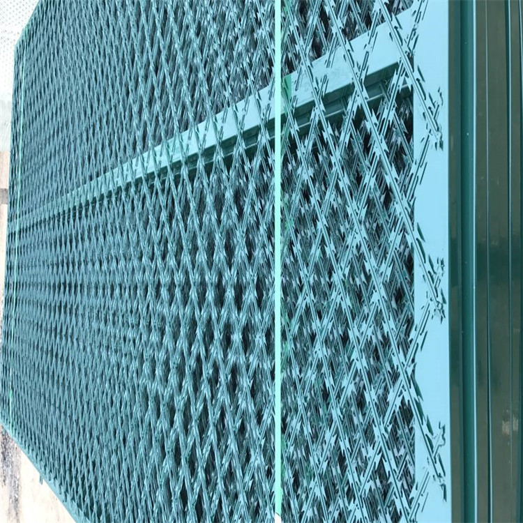 監獄刀片鋼網墻主要用途:監獄、機場封閉 、私人地域、軍事重地、 場區圍網、 開發區隔離網使用.制作工藝:預直絲、裁剪、預彎、焊接、檢驗、置框、破壞性實驗、美化(PE、PVC、熱浸)、包裝、入庫、出廠。