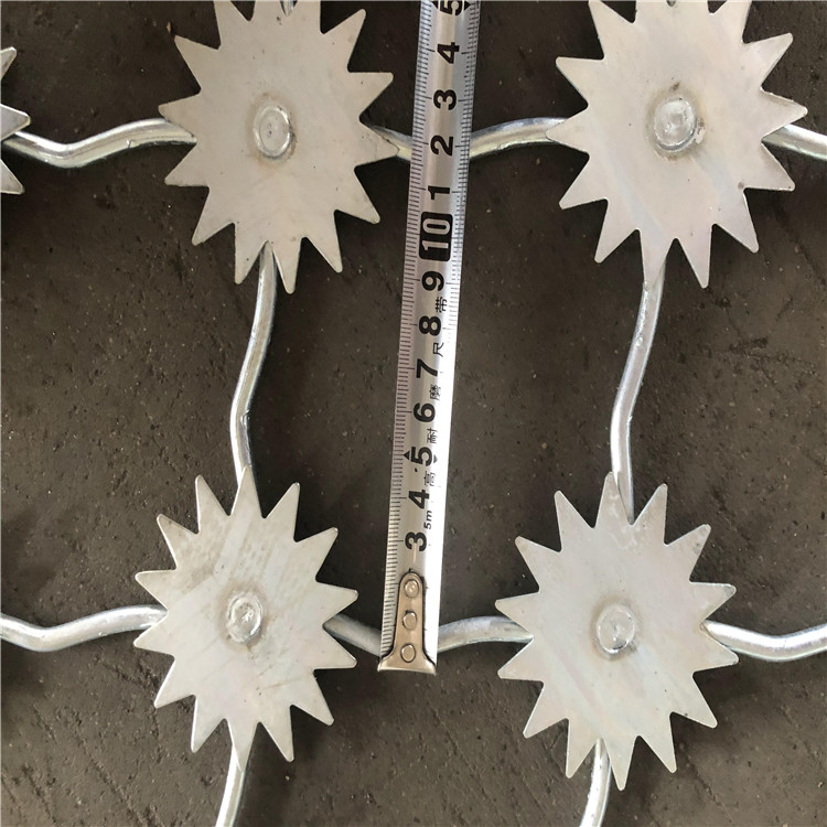 寸: 120mm*110mm(高*寬) ,網絲直徑8mm ,采用S195線材高壓焊接,每一個焊點附焊梅花刺-一個。