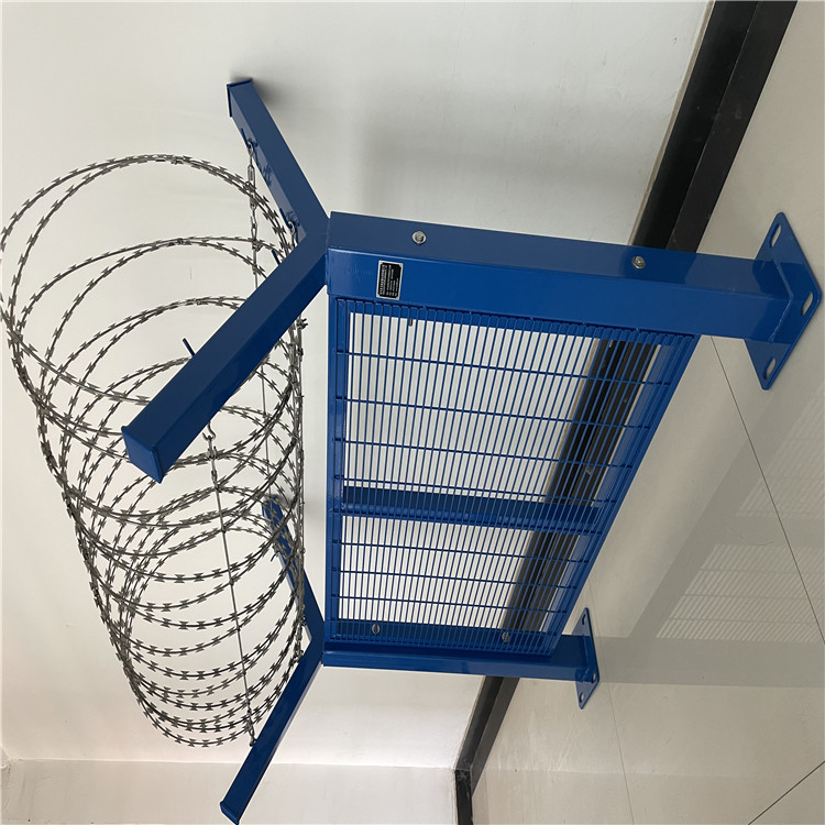 監(jiān)獄358加密防護網(wǎng)配件:一般配有方柱60x60mmx3mm 跟護欄網(wǎng)片同樣的表面處理方式,通過螺絲將網(wǎng)片和柱子連接起來,可以預埋或者是通過法蘭盤與水泥地面固定,護欄頂部可以通過Y型柱配有刀片刺繩,普通刺繩,進一步起到防護作用