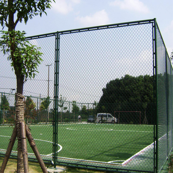 球場圍網統稱叫勾花護欄網,一般多用在球場、體育場、運動場等體育設施場地,像公園圍欄網選擇這種就比較少,這種圍網由勾花網片、邊框、立柱三部分級成,勾花網片的材質分為包塑鋼絲,不銹鋼絲和純鋼絲三種,在市面上比較流行包塑鋼絲和純鋼絲這兩種,而體育設施場地多為包塑鋼絲。