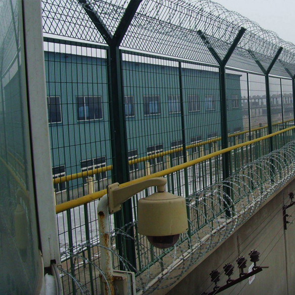 在監獄防爬網的橫向加裝四道折彎加強筋,在整體成本增加不多的同時,使網面強度和美感顯著增加,是目前國內監獄、機場封閉、私人地域、軍事重地、場區圍網、開發區隔離等護欄網受歡迎之一。