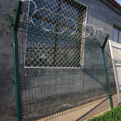 監獄鋼網墻由刀片刺網和圍欄網組合使用,刀片刺網有熱鍍鋅刀刺網和不銹鋼刀刺網,都是防護效果很好的產品,其中不