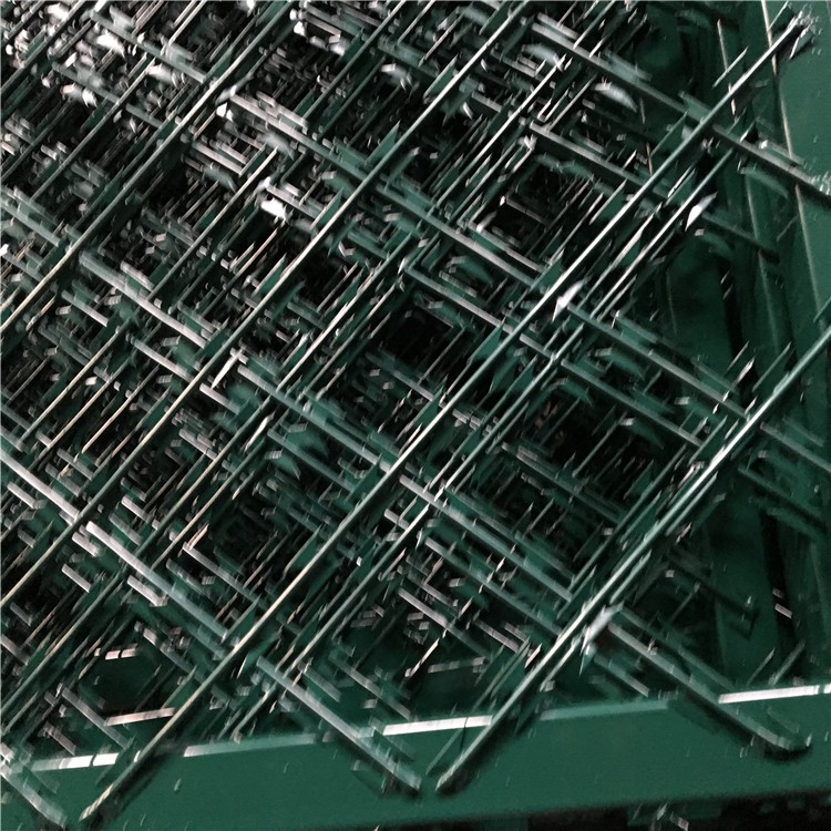 2,焊接刀刺網(wǎng)成型:把沖好的刀片裹在熱鍍鋅絲上面,經(jīng)調(diào)直達(dá)到預(yù)定的長度自動切斷,送入到模具內(nèi),排焊機(jī)把經(jīng)和緯相交叉的部分,沖過電流焊接到一起,數(shù)控電機(jī)拉動網(wǎng)片前進(jìn)一格,達(dá)到網(wǎng)片的長度后,排焊機(jī)自動停止工作,一張焊接好的刀片刺繩網(wǎng)片,就完成了,