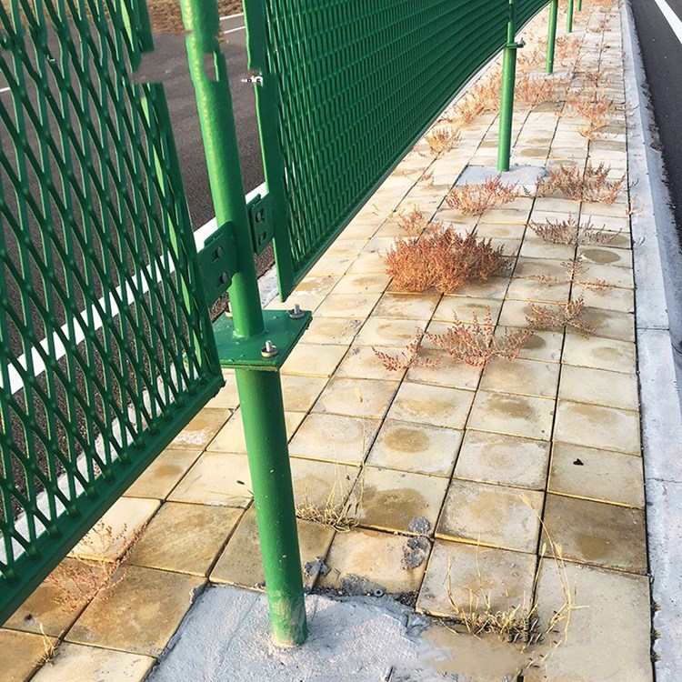 高速公路隔離柵采用鋼板網為主體,附以邊框以加強其整體性能并便于安裝,達到快速組裝的安裝目的。用的這個鋼板網就是防炫目網,也就是平時說的防拋網、金屬板網、鋼板拉伸網、金屬擴張網、鐵板網等。它的制作過程簡單的來說是金屬板經由沖剪機裁剪沖壓,形成網狀的張料物體,由于這種鋼板網的獨特構造,能夠改變光線直射過來的方向,使車輛和燈光一部分被阻擋,一部分被改變方向,只有少數部分被傳遞到人的眼睛里,起到了防止眼睛眼暈的作用。這樣既可以隔離上下行車道,又能有效的保障防眩設施的連續性和橫向通視,達到防眩、隔離雙重目的,是一種非常合理的高速公路護欄網產品。