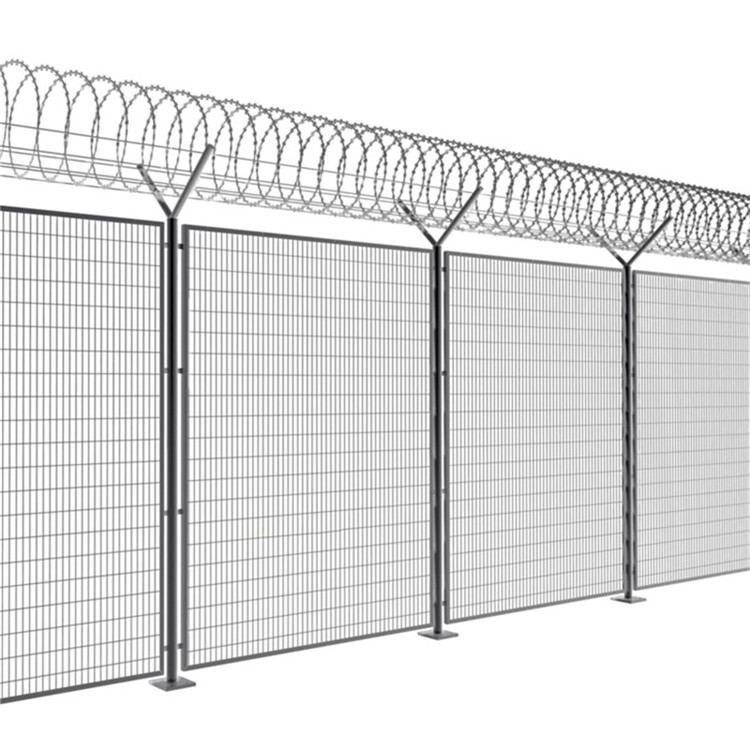 看守所隔離柵欄-巡道防護網上部會安裝刀片刺網(刺絲滾籠),刀片刺網具有嚇阻、防翻越的效果,材質堅硬,高強度,高張力,造型設計獨特,不宜觸摸,因而能達到很好的防護隔離效果。看守所隔離柵欄-巡道防護網還具有施工簡便,經濟實用等優點.